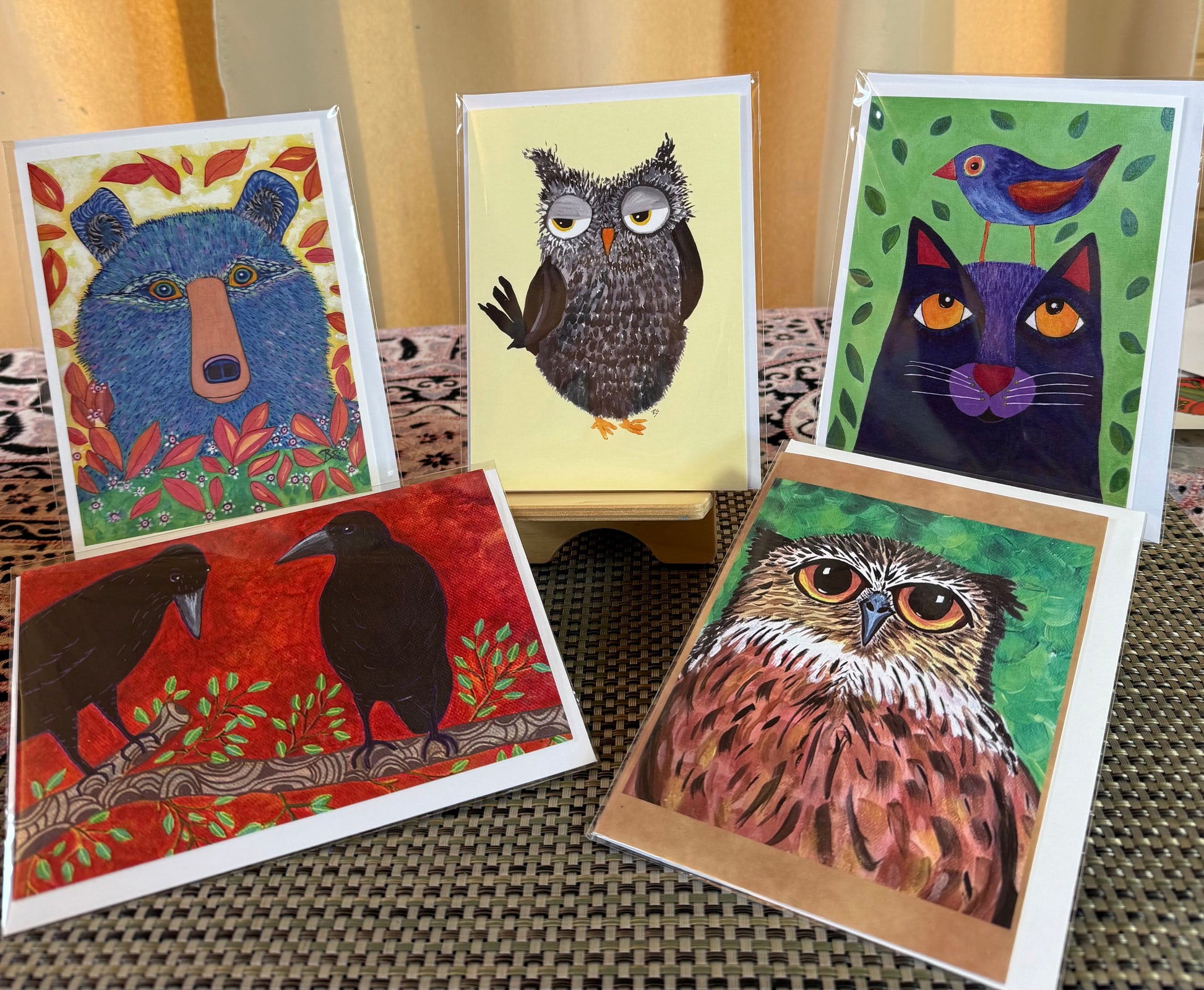 These colorful, imaginative 5 x 7 cards are perfect for birthdays, thank-yous, or simply sending a smile to someone special. This whimsical animal card collection is a delightful gift for animal lovers, bird watchers, and fans of quirky, joyful art. Great for kids too!