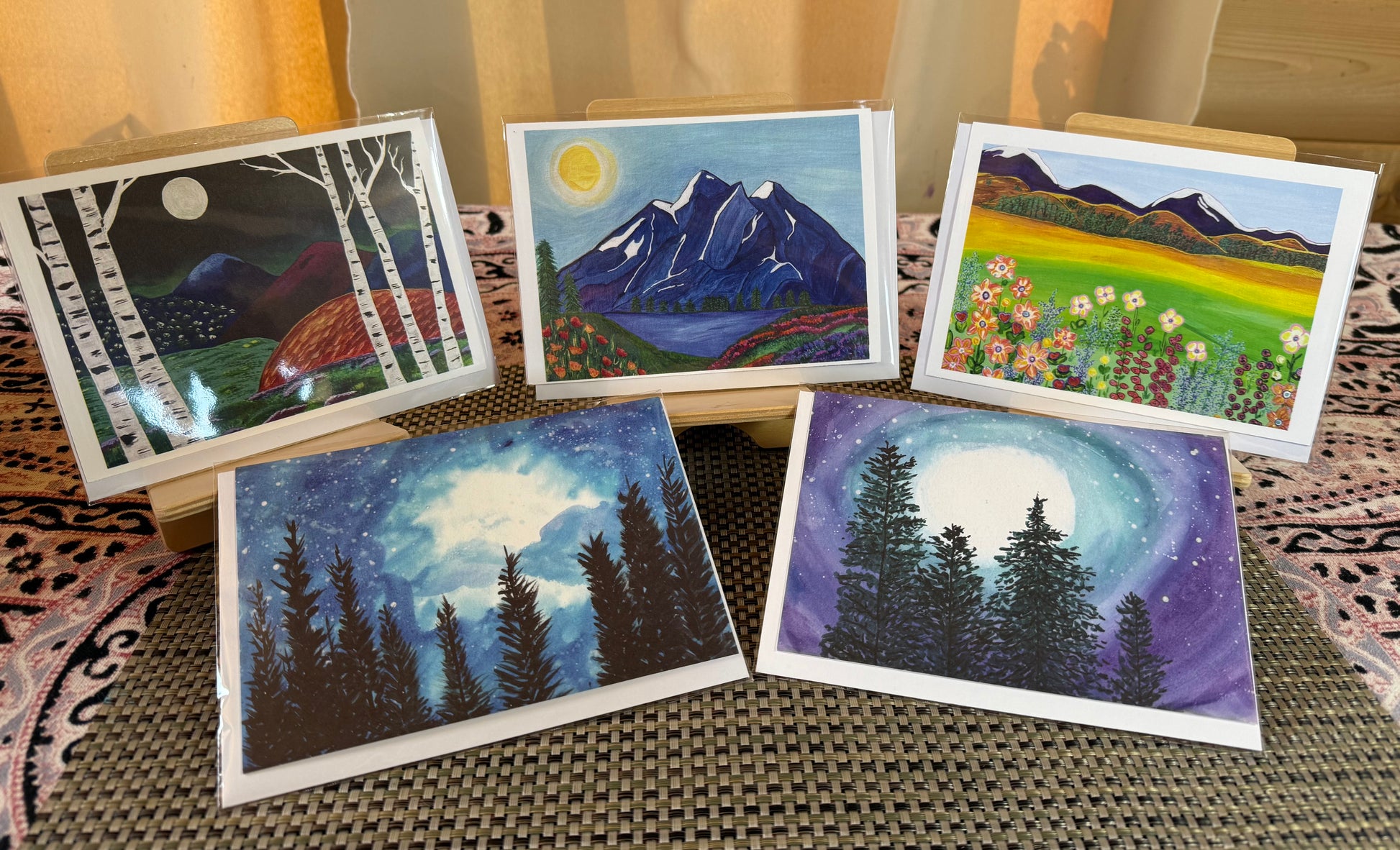 Bring joy and beauty to every occasion with this whimsical mountain scene card set, featuring colorful fields, rolling hills, and dreamy peaks. Each card captures the magic of nature with vibrant, playful artwork that celebrates the charm of mountains, meadows, and open skies. Perfect for birthdays, thank-you notes, or simply sending a smile, these lovely mountain cards make every message feel personal and uplifting. Printed on high-quality cardstock, this enchanting card collection is ideal for nature lovers, hikers, and anyone who adores colorful mountain landscapes.