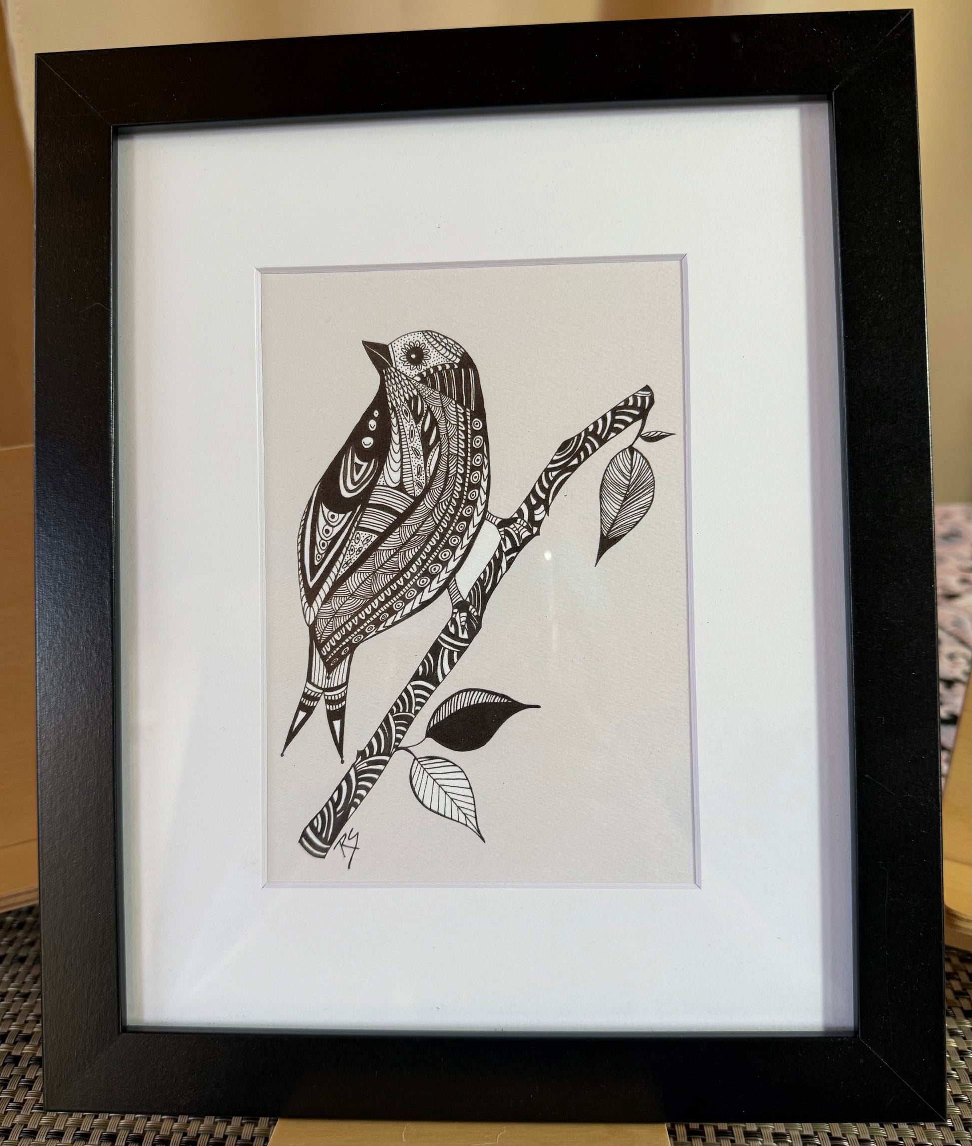 A hand-drawn sparrow in classic pen and ink, printed on a 5x7 eco-friendly art card. Perfect as a greeting card, bird lover gift, or framed as small wall art. Sustainably made with nature in mind.